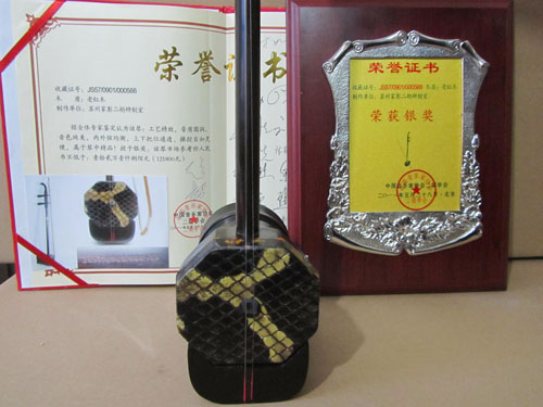 二胡制作大師丁家彭先生1949年出生樂器世家,17歲隨其祖父學琴藝,并深得精髓,其聰穎好學,悉心鉆研與 探求二胡制作,博得同行的欽佩贊許,更得了許多知名演奏家的稱贊,充分認識到二胡制作每個環節,都對二胡制作都有影響力,因此對二胡的選材,選料,蟒皮都十分嚴格,二胡整體穩定性良好,環境干擾影響極小。